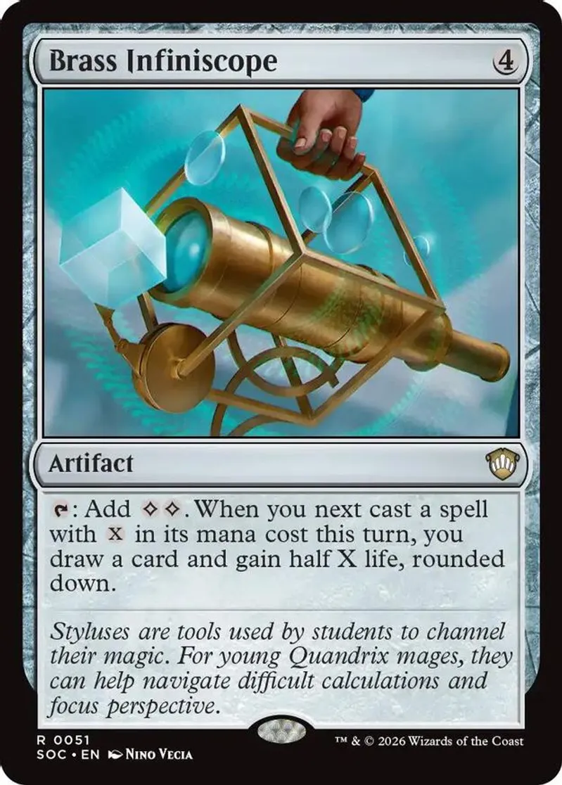 Magic: the Gathering (mtg) Rare artifact Brass Infiniscope from Commander: Secrets of Strixhaven (SOC) last updated 2026-04-17 00:24:38