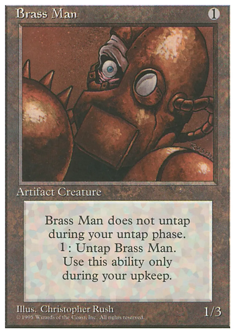 | Oracle Text | Brass Man doesn't untap during your untap step. At the beginning of your upkeep, you may pay {{1}}. If you do, untap Brass Man. | ||