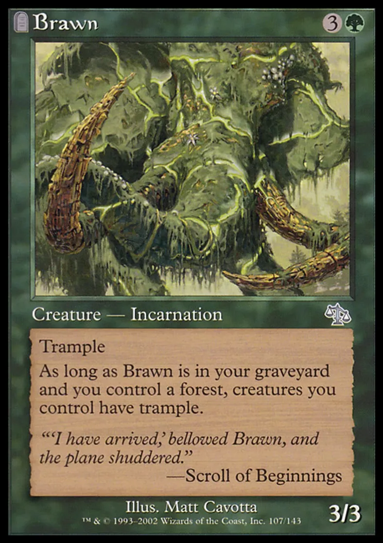 | Oracle Text | Trample As long as Brawn is in your graveyard and you control a Forest, creatures you control have trample. | ||