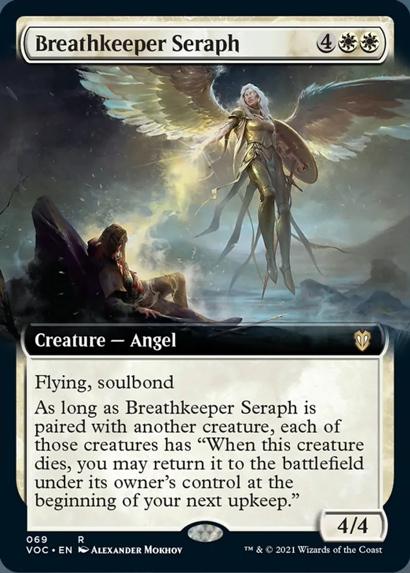 Breathkeeper Seraph (Extended Art) is a Rare in the set Crimson Vow Commander.