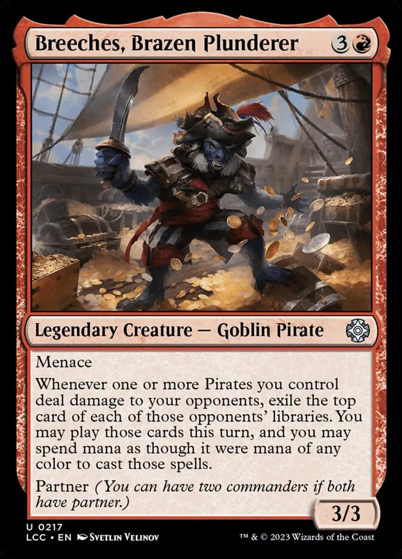Magic: the Gathering (mtg) uncommon Legendary Creature — Goblin Pirate Breeches, Brazen Plunderer from Lost Caverns of Ixalan Commander (lcc) last updated 2026-02-21 15:52:32
