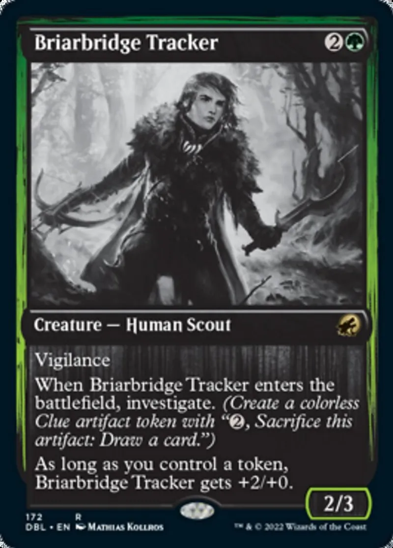 When Briarbridge Tracker enters the battlefield, investigate. (Create a colorless Clue artifact token with "{2}, Sacrifice this artifact: Draw a card.")