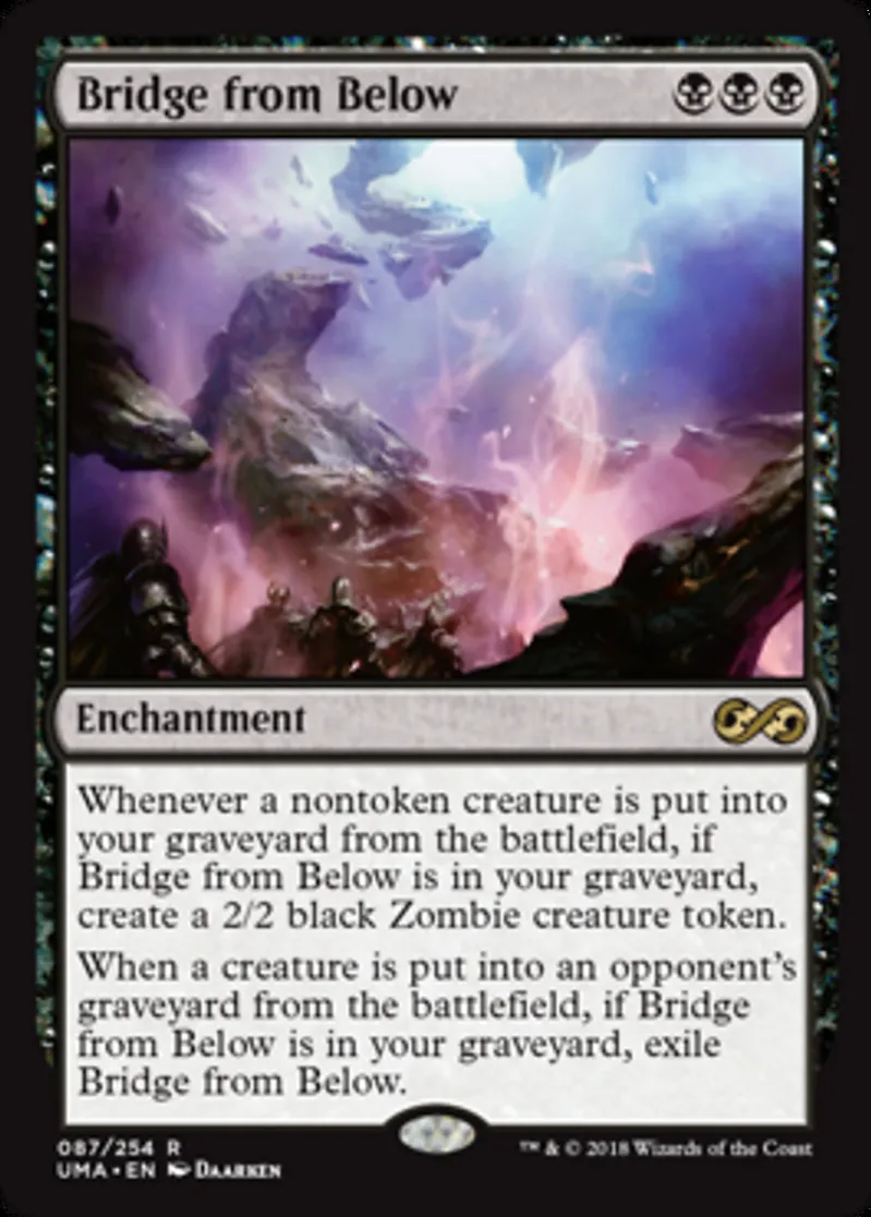 | Oracle Text | Whenever a nontoken creature is put into your graveyard from the battlefield, if Bridge from Below is in your graveyard, create a 2/2 black Zombie creature token.
