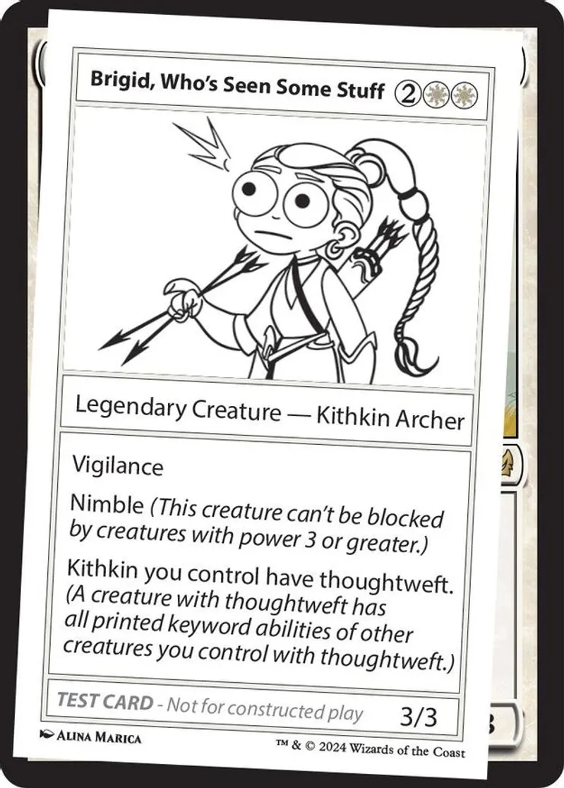 Magic: the Gathering (mtg) Special legendary creature — kithkin archer Brigid, Who's Seen Some Stuff from Mystery Booster 2 Playtest Cards (MB2PC) last updated 2026-02-25 15:18:05
