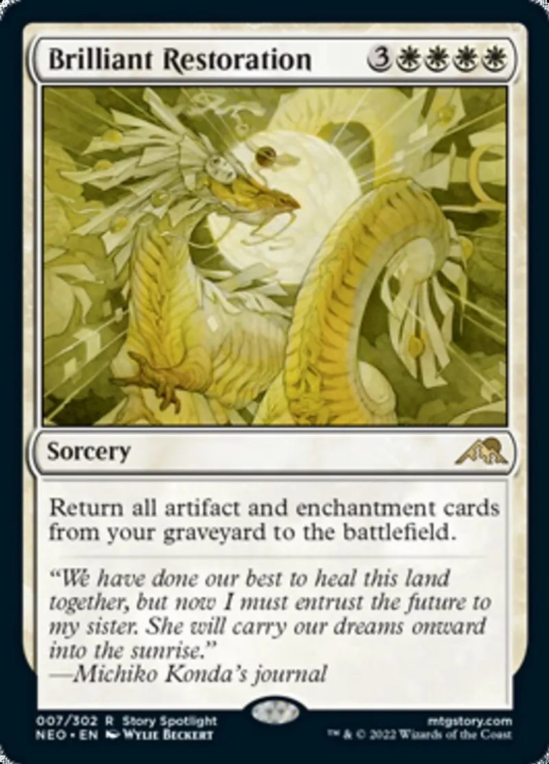 Brilliant Restoration is a rare in the set Kamigawa: Neon Dynasty.