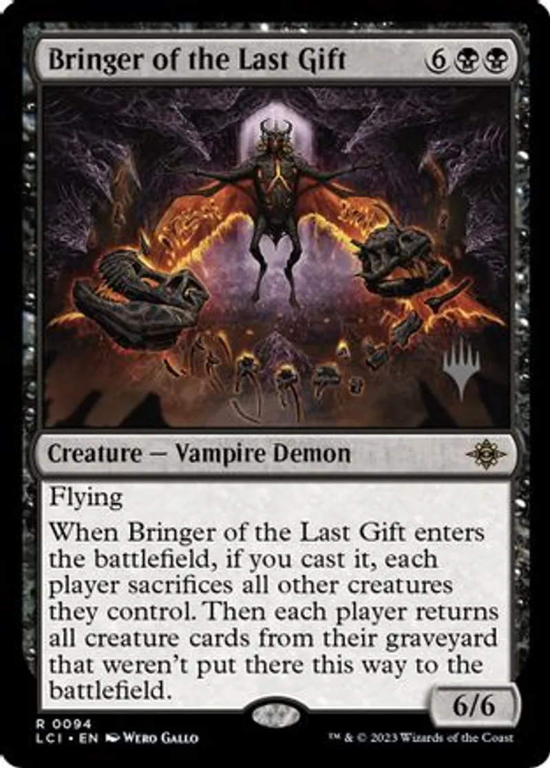 Magic: the Gathering (mtg) Rare Creature — Vampire Demon Bringer of the Last Gift from Promo Pack: The Lost Caverns of Ixalan (PLCI) last updated 2026-02-24 15:12:04