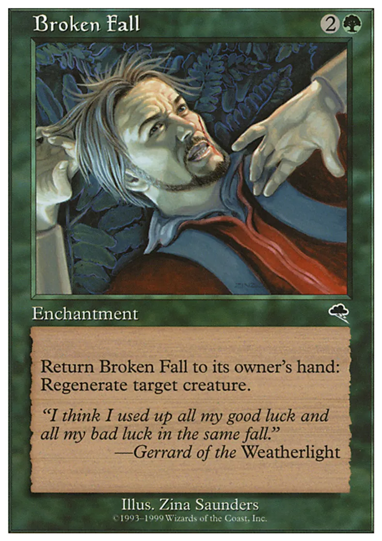 | Oracle Text | Return Broken Fall to its owner's hand: Regenerate target creature. | ||