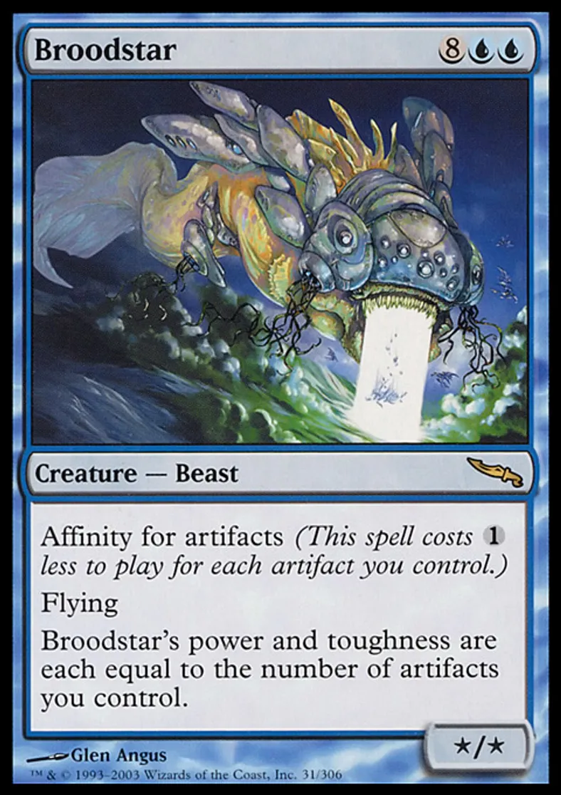 | Oracle Text | Affinity for artifacts (This spell costs {{1}} less to cast for each artifact you control.) Flying Broodstar's power and toughness are each equal to the number of artifacts you control. | ||