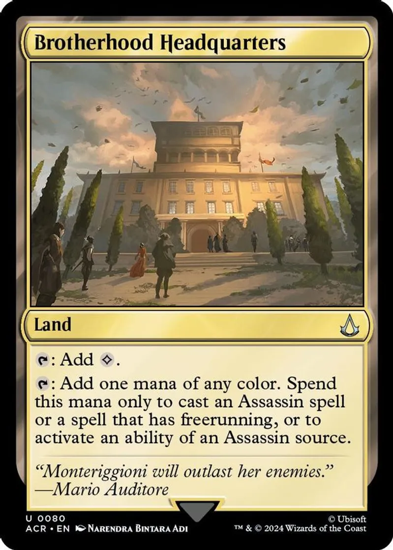 Brotherhood Headquarters is a Uncommon in the set Universes Beyond: Assassin's Creed.