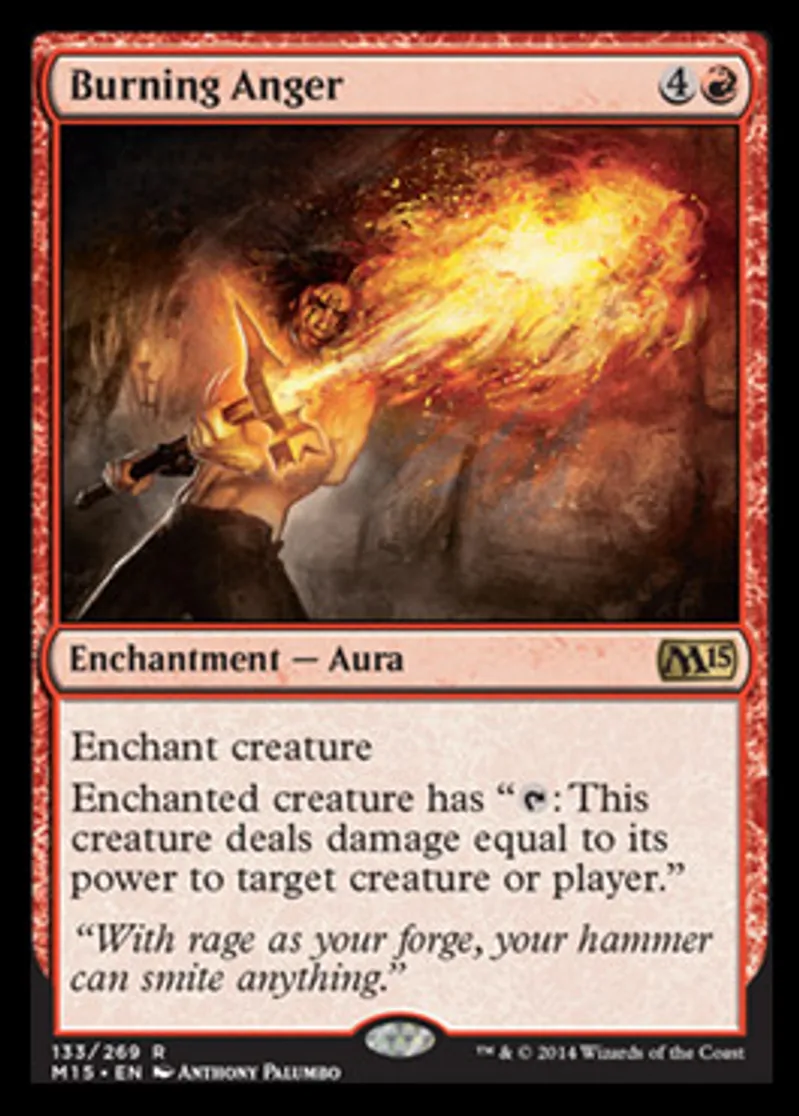 Magic: the Gathering (mtg) Rare Enchantment - Aura Burning Anger from Magic 2015 Core Set (M15) last updated 2026-02-21 17:17:03