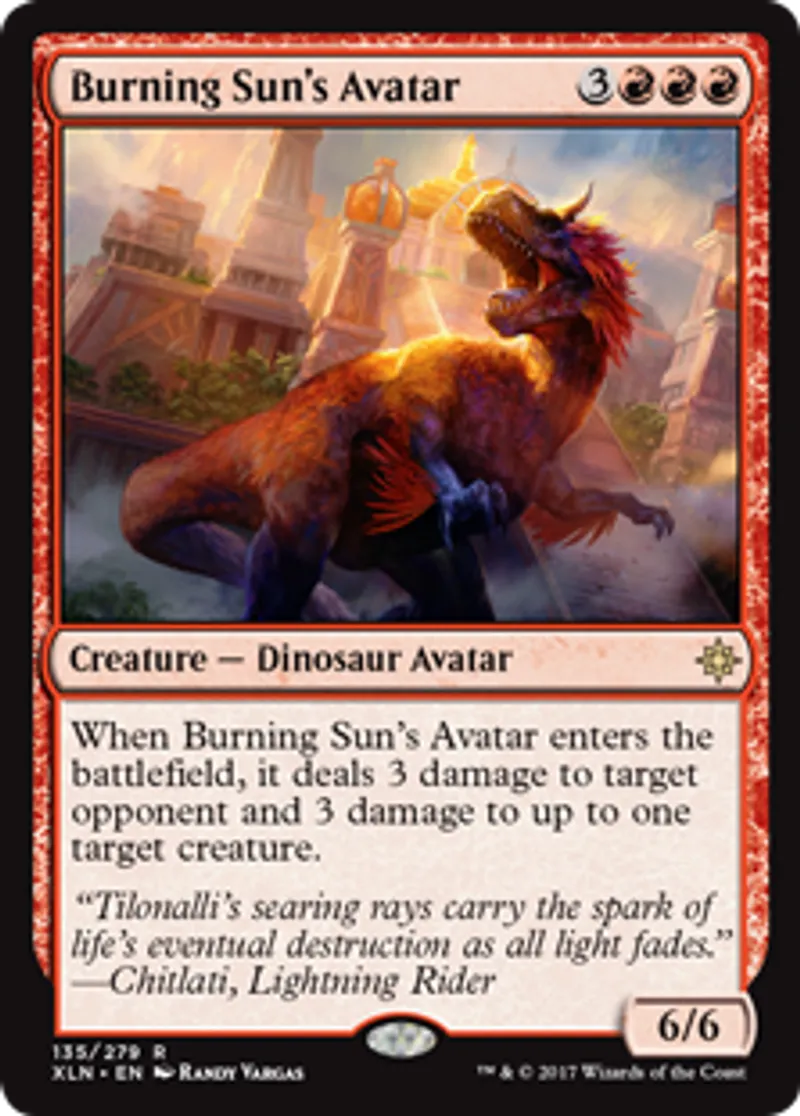 Magic: the Gathering (mtg) Rare Creature - Dinosaur Avatar Burning Sun's Avatar from Ixalan (XLN) last updated 2026-02-25 16:05:07