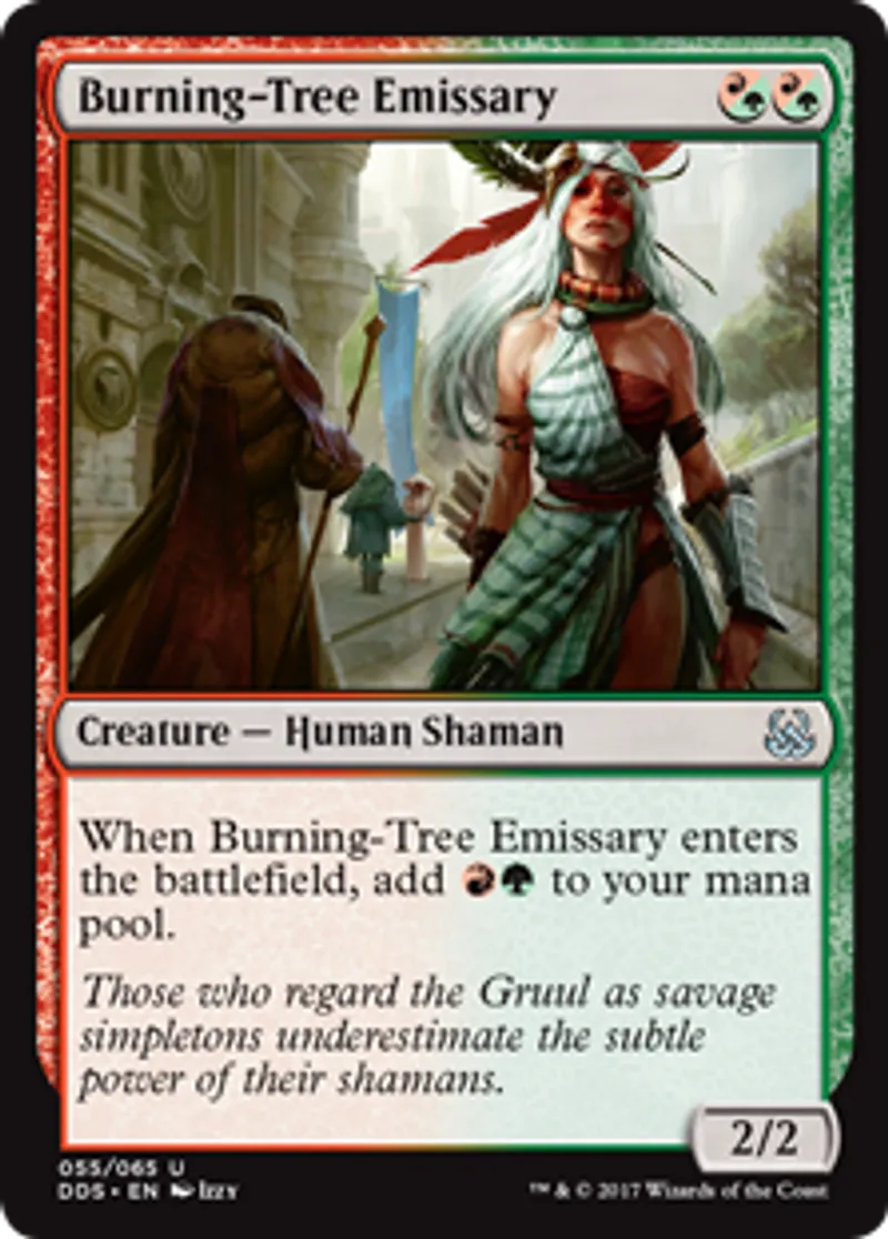 | Oracle Text | When Burning-Tree Emissary enters the battlefield, add {{r}}{{g}} to your mana pool. | ||