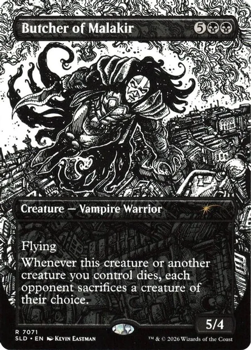 Magic: the Gathering (mtg) Rare creature — vampire warrior Butcher of Malakir from Secret Lair Drop Series (SLD) last updated 2026-03-15 14:17:44