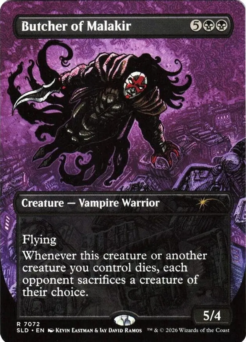 Magic: the Gathering (mtg) Rare creature — vampire warrior Butcher of Malakir from Secret Lair Drop Series (SLD) last updated 2026-03-15 14:17:44