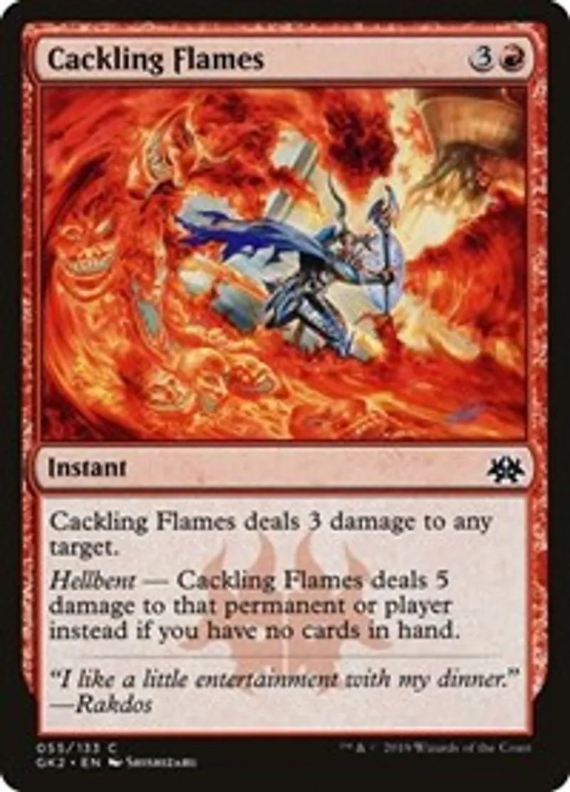 | Oracle Text | Cackling Flames deals 3 damage to any target.