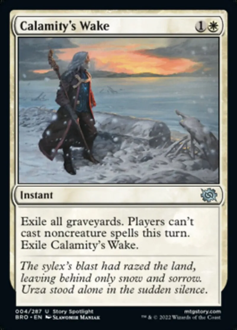 | Oracle Text | Exile all graveyards. Players can't cast noncreature spells this turn. Exile Calamity's Wake. | ||