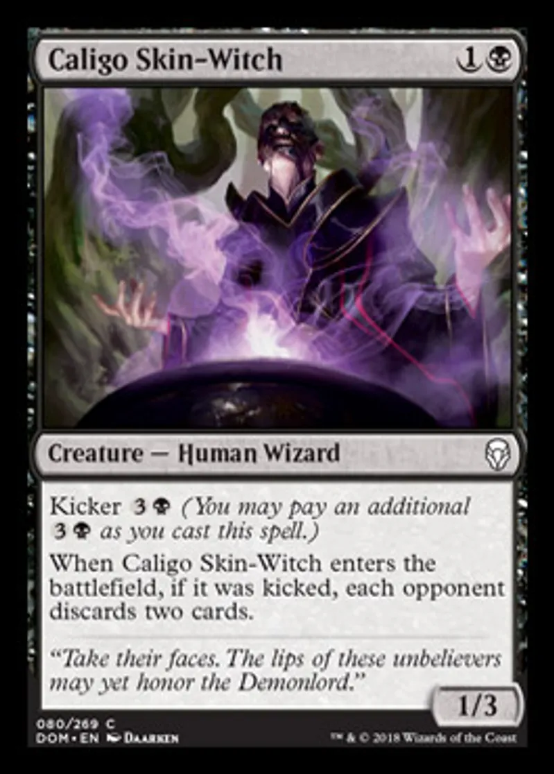Magic: the Gathering (mtg) Common Creature - Human Wizard Caligo Skin-Witch from Dominaria (DOM) last updated 2026-02-21 16:51:03