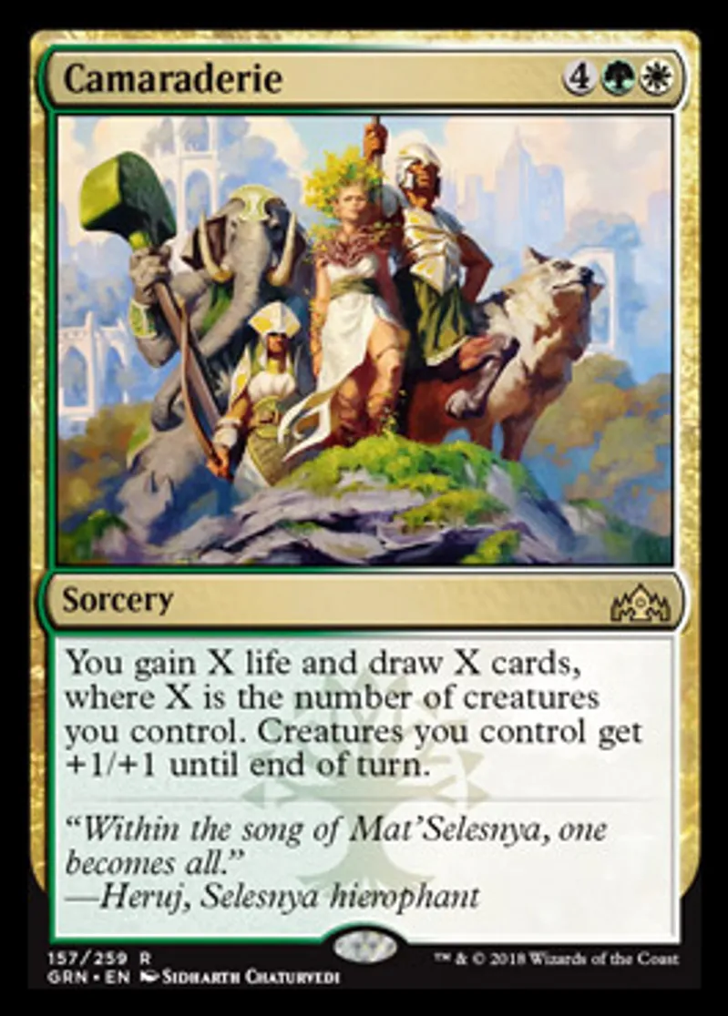 Magic: the Gathering (mtg) Rare Sorcery Camaraderie from Guilds of Ravnica (GRN) last updated 2026-02-21 16:54:02