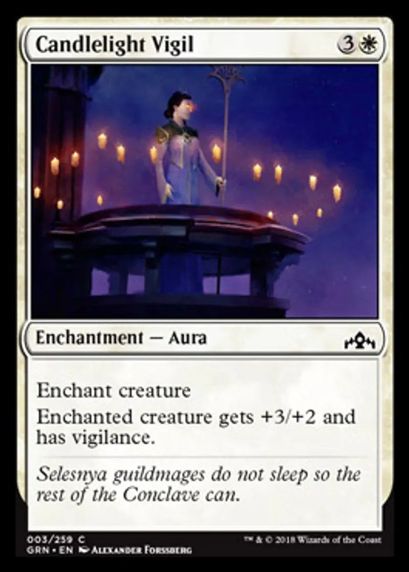 Magic: the Gathering (mtg) Common Enchantment - Aura Candlelight Vigil from Guilds of Ravnica (GRN) last updated 2026-02-21 16:54:02