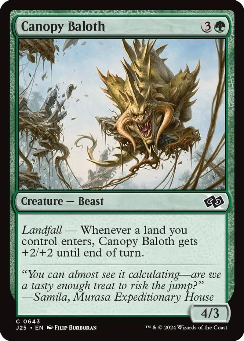 Magic: the Gathering (mtg) Common creature — beast Canopy Baloth from Foundations Jumpstart (J25) last updated 2026-02-21 15:33:32