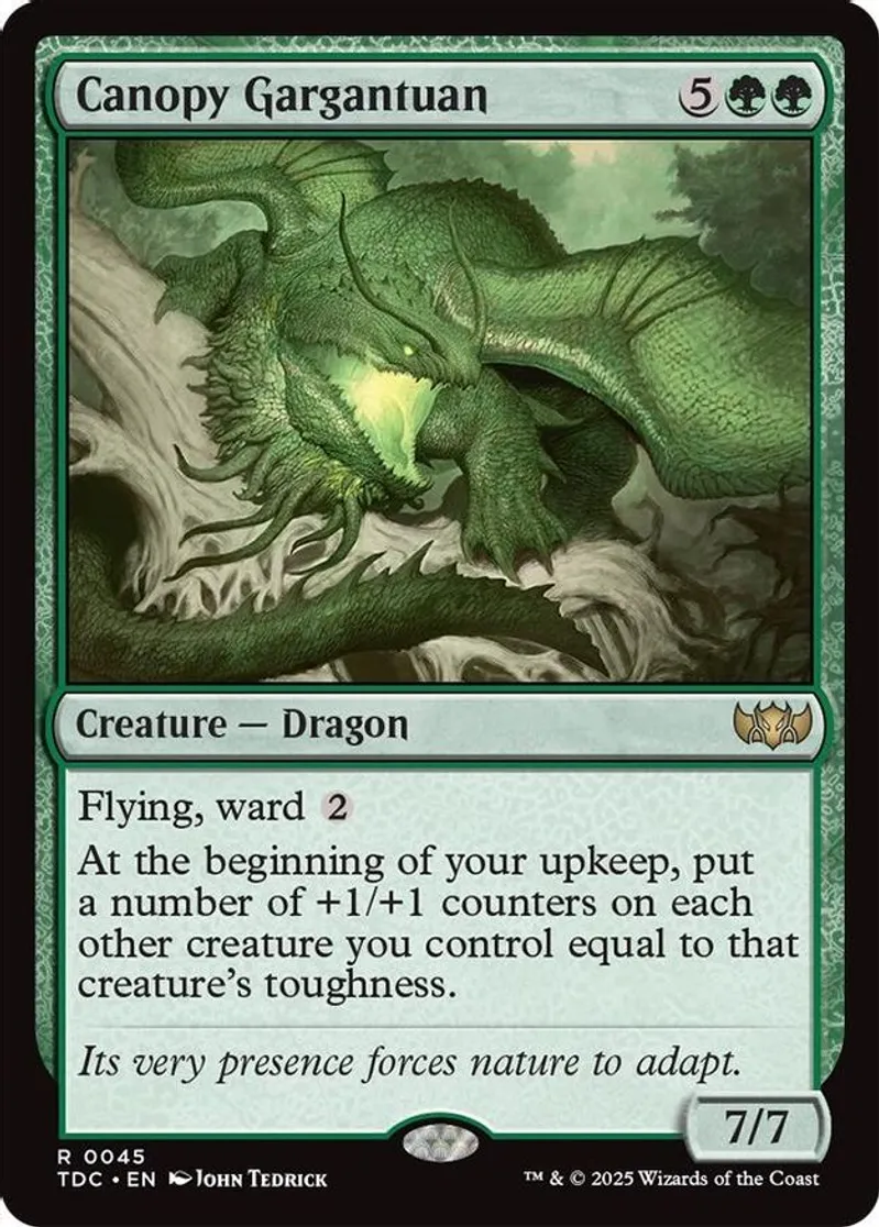 Magic: the Gathering (mtg) Rare creature — dragon Canopy Gargantuan from Commander: Tarkir: Dragonstorm (TDC) last updated 2025-12-18 14:49:32