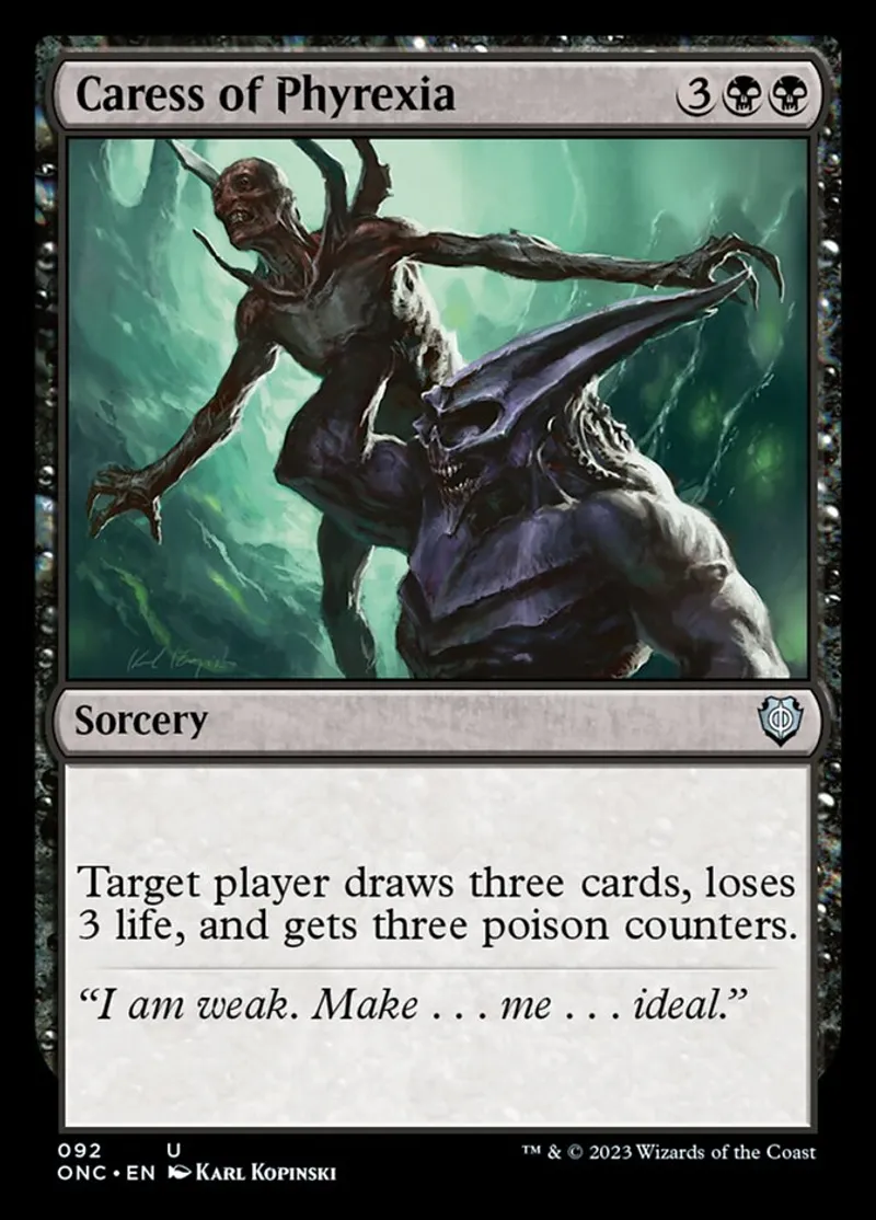 Caress of Phyrexia is a uncommon in the set Phyrexia: All Will Be One Commander.