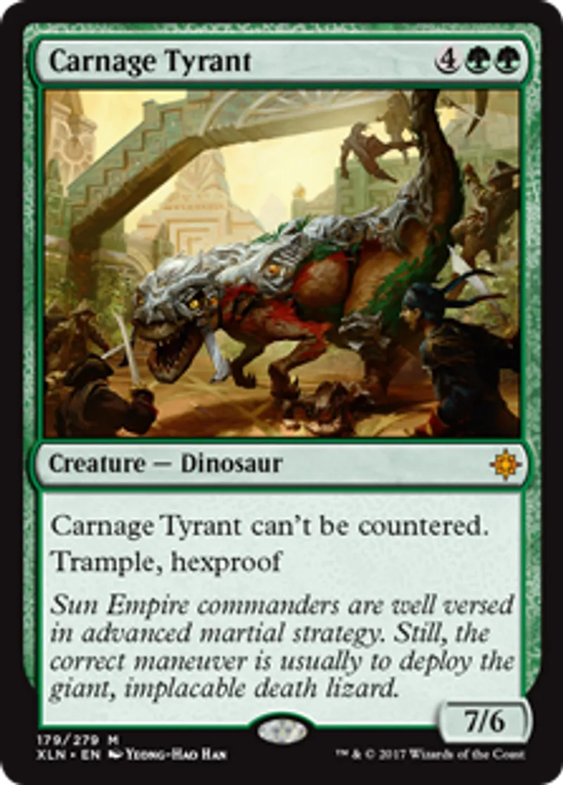 Magic: the Gathering (mtg) Mythic Rare Creature - Dinosaur Carnage Tyrant from Ixalan (XLN) last updated 2026-02-07 16:48:02