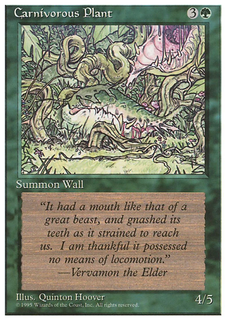 Magic: the Gathering (mtg) Common Creature - Plant Wall Carnivorous Plant from Fourth Edition (4ED) last updated 2026-02-21 17:29:32