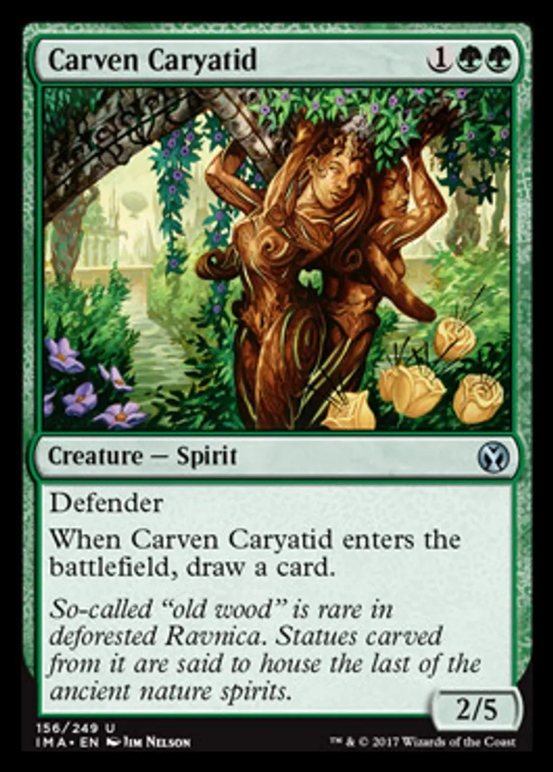 | Oracle Text | Defender (This creature can't attack.) When Carven Caryatid enters the battlefield, draw a card. | ||
