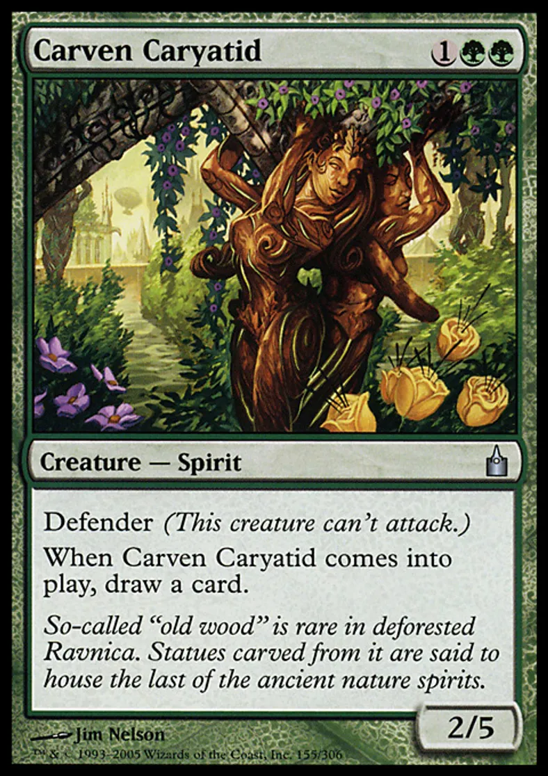 | Oracle Text | Defender (This creature can't attack.) When Carven Caryatid enters the battlefield, draw a card. | ||