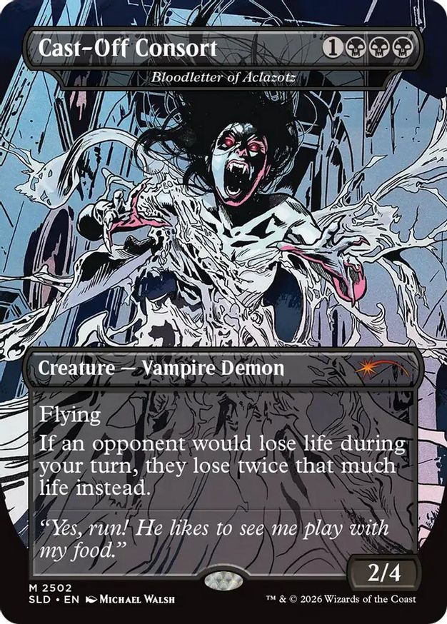Magic: the Gathering (mtg) Mythic Rare creature — vampire demon Cast-Off Consort - Bloodletter of Aclazotz from Secret Lair Drop Series (SLD) last updated 2026-03-03 02:56:01