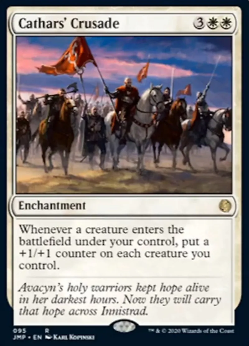 Magic: the Gathering (mtg) rare Enchantment Cathars' Crusade from Jumpstart (jmp) last updated 2026-02-24 14:31:02