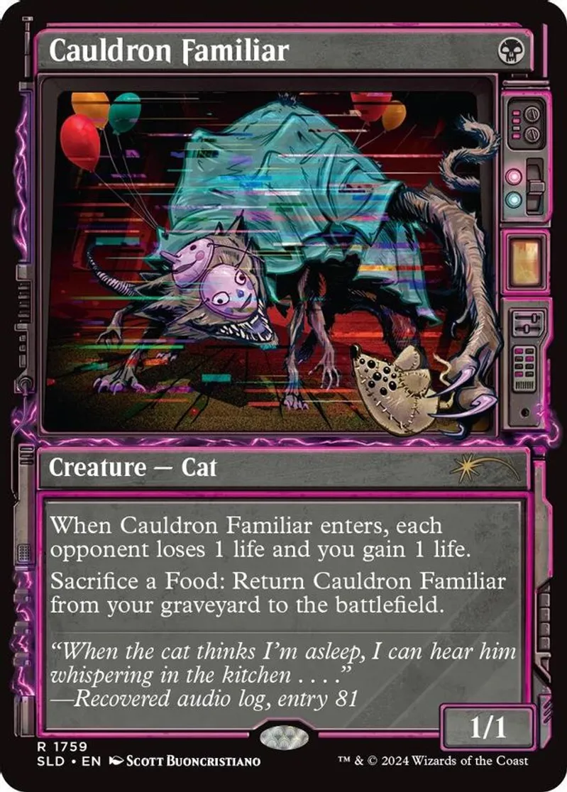 Magic: the Gathering (mtg) Rare creature — cat Cauldron Familiar from Secret Lair Drop Series (SLD) last updated 2026-02-25 14:50:03