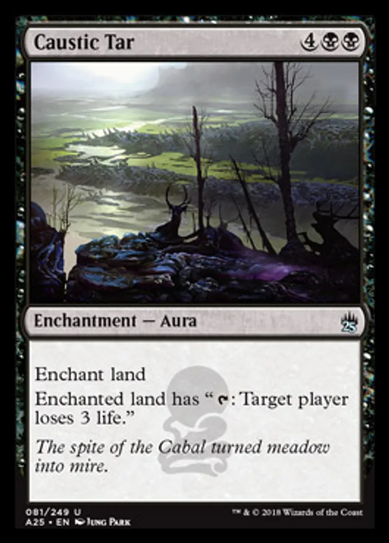 Magic: the Gathering (mtg) Uncommon Enchantment - Aura Caustic Tar from Masters 25 (A25) last updated 2026-02-21 16:50:02