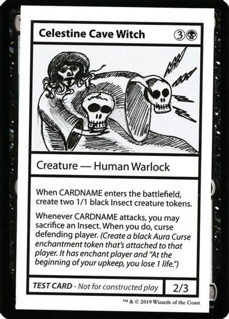 | Oracle Text | When Celestine Cave Witch enters the battlefield, create two 1/1 black Insect creature tokens.