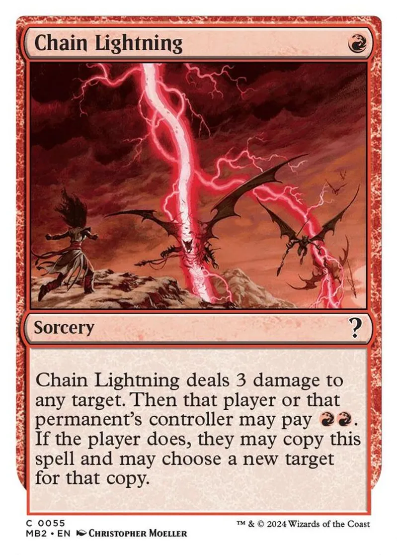 Chain Lightning (White Border) is a Uncommon in the set Mystery Booster 2.