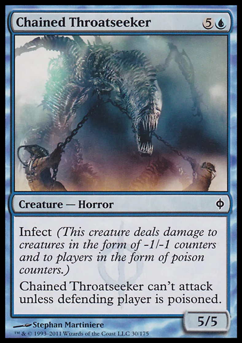 | Oracle Text | Infect (This creature deals damage to creatures in the form of -1/-1 counters and to players in the form of poison counters.) Chained Throatseeker can't attack unless defending player is poisoned. | ||