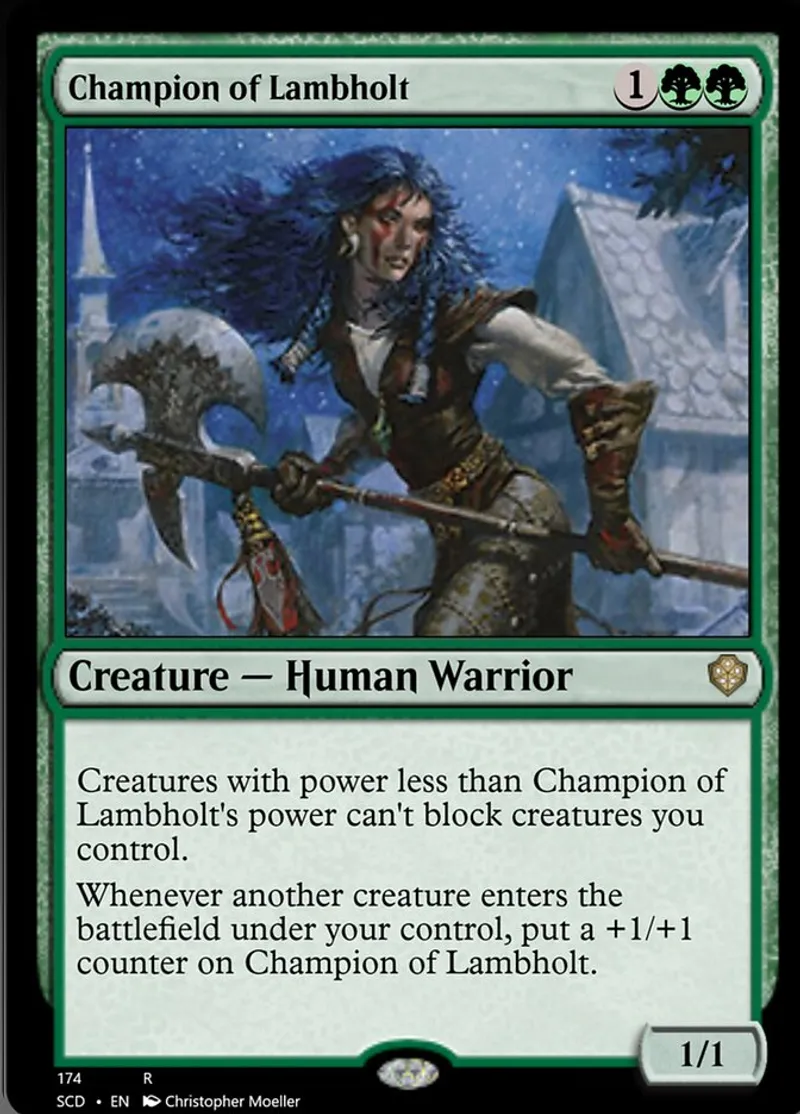 Magic: the Gathering (mtg) rare Creature — Human Warrior Champion of Lambholt from Starter Commander Decks (scd) last updated 2026-02-25 14:56:02
