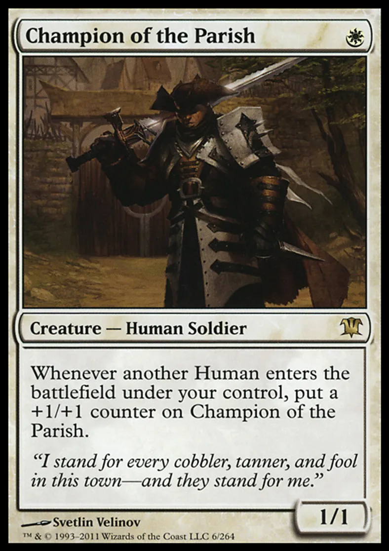 Magic: the Gathering (mtg) Rare Creature - Human Soldier Champion of the Parish from Innistrad (ISD) last updated 2026-02-24 15:59:02