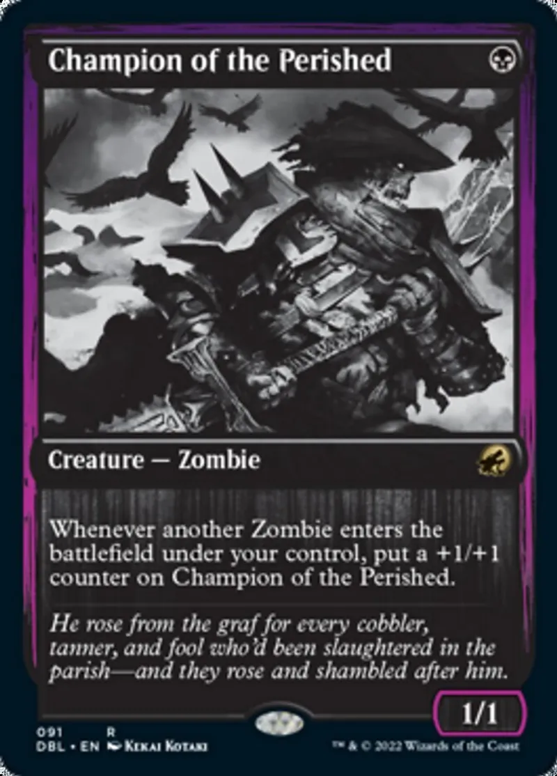 | Oracle Text | Whenever another Zombie enters the battlefield under your control, put a +1/+1 counter on Champion of the Perished. | ||