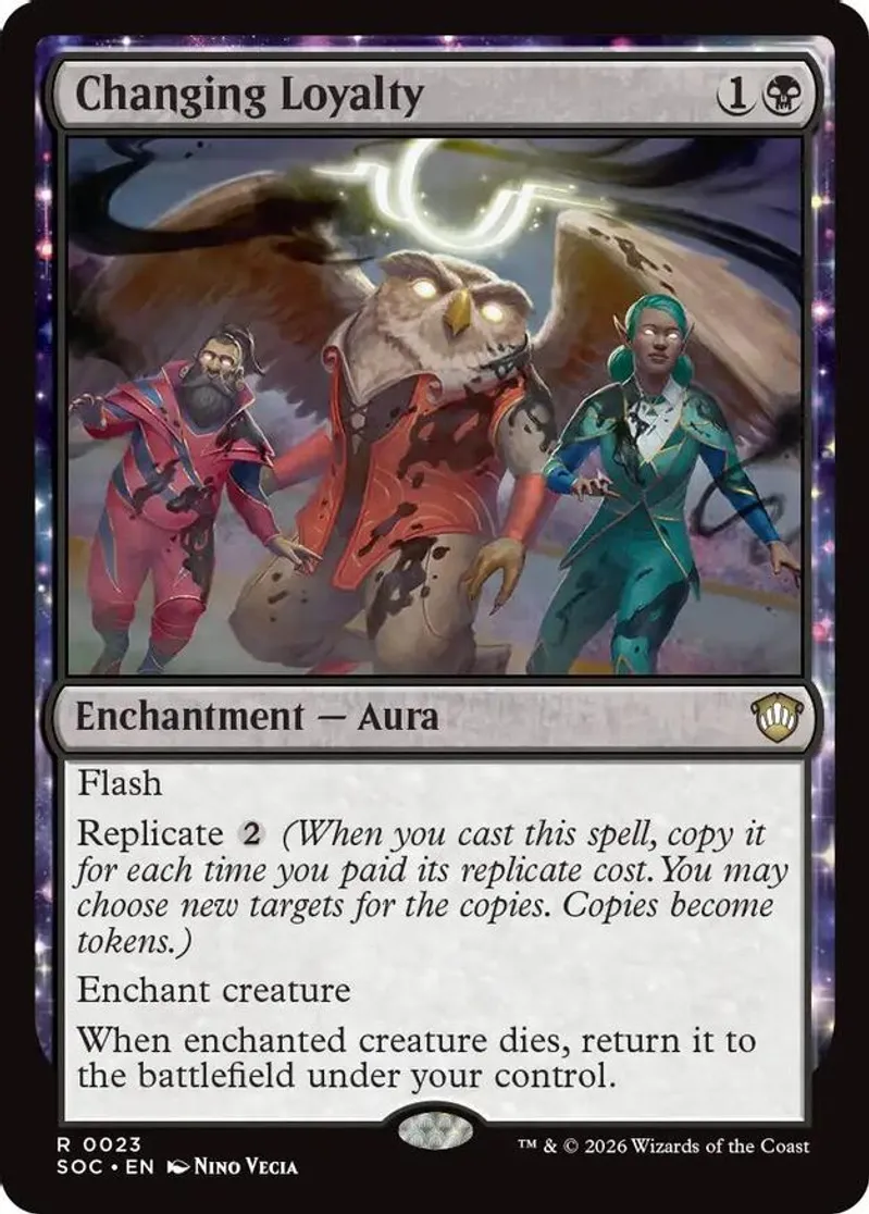 Magic: the Gathering (mtg) Rare enchantment — aura Changing Loyalty from Commander: Secrets of Strixhaven (SOC) last updated 2026-04-17 14:18:45