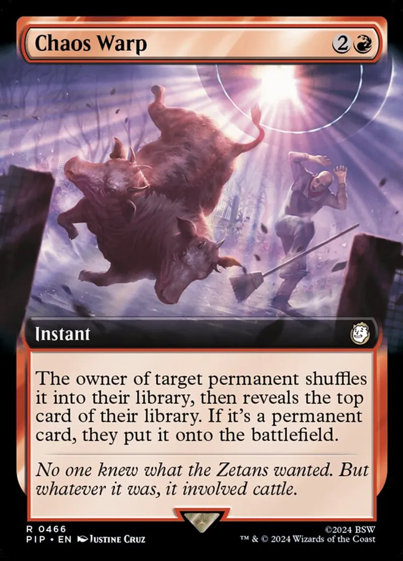 Chaos Warp (Extended Art) is a rare in the set Universes Beyond: Fallout.