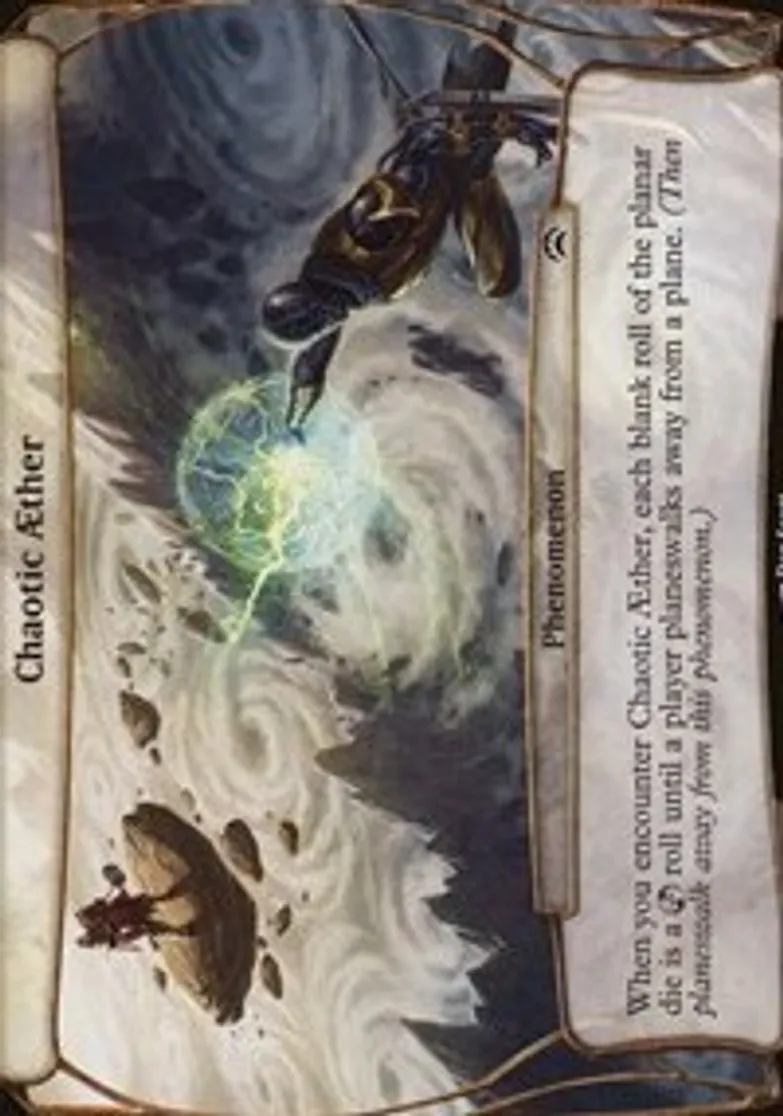 | Oracle Text | When you encounter Chaotic Aether, each blank roll of the planar die is a Chaos roll until a player planeswalks away from a plane. (Then planeswalk away from this phenomenon.) | ||