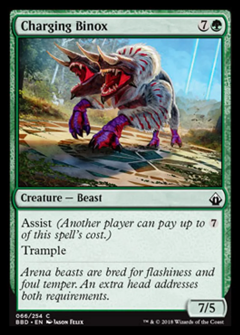 Magic: the Gathering (mtg) Common Creature - Beast Charging Binox from Battlebond (BBD) last updated 2026-02-21 16:52:06