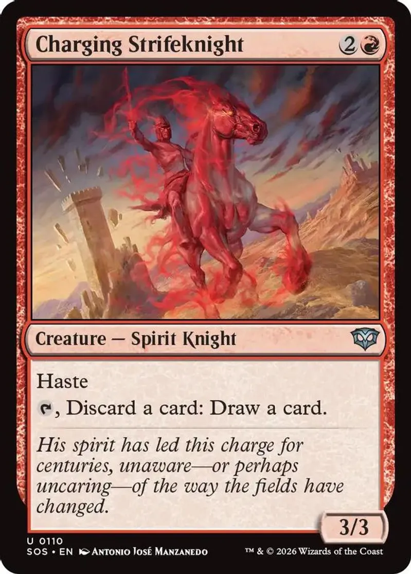 Magic: the Gathering (mtg) Uncommon creature — spirit knight Charging Strikeknight from Secrets of Strixhaven (SOS) last updated 2026-04-16 23:16:37