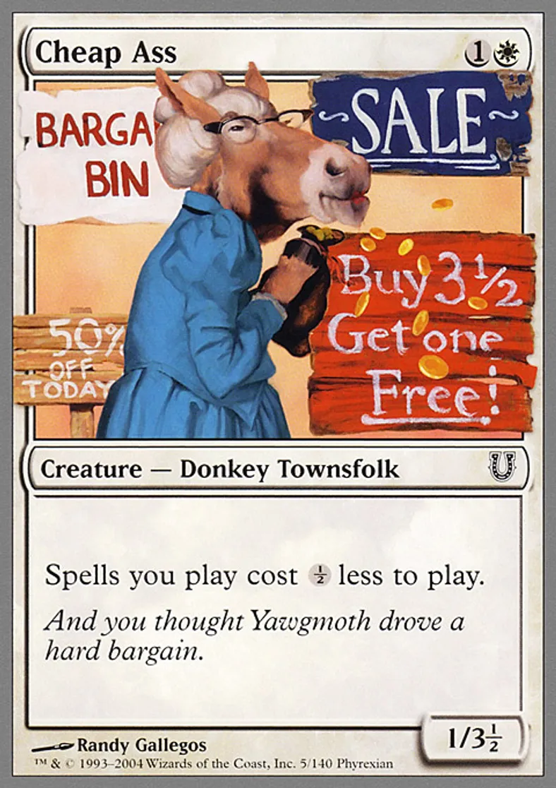 Magic: the Gathering (mtg) Common Creature- Donkey Townsfolk Cheap Ass from Unhinged (UNH) last updated 2026-02-24 14:46:33