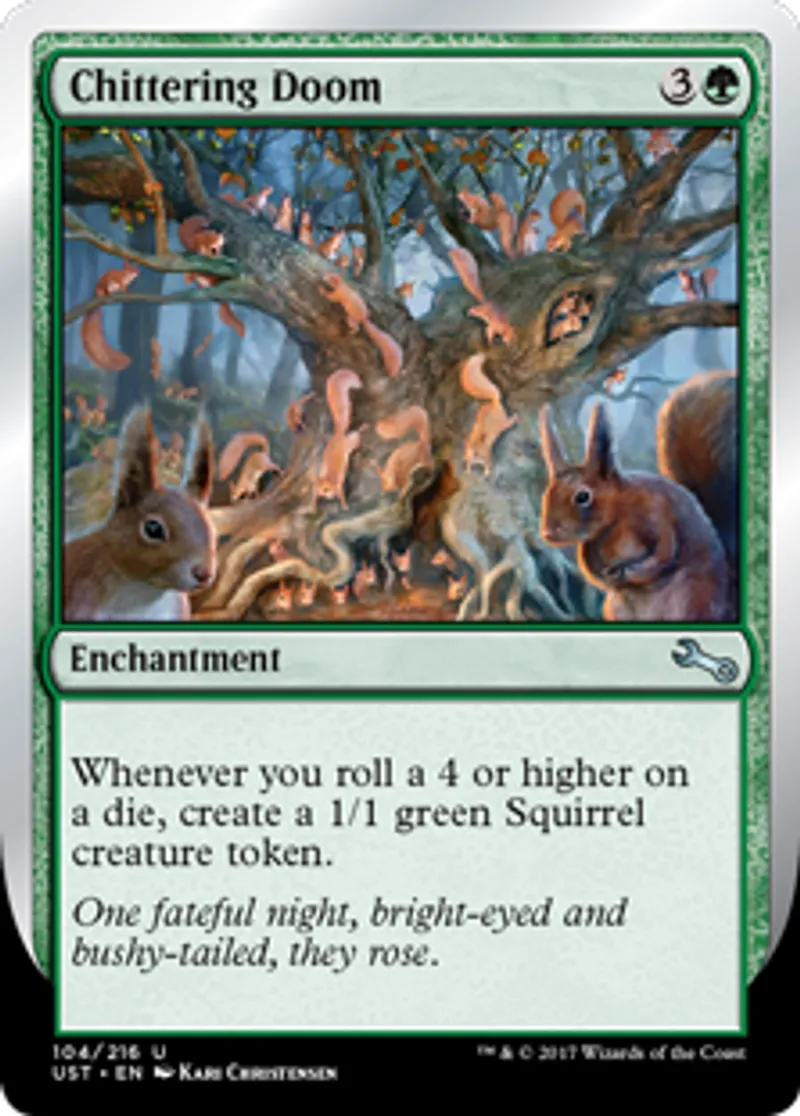 | Oracle Text | Whenever you roll a 4 or higher on a die, create a 1/1 green Squirrel creature token. | ||