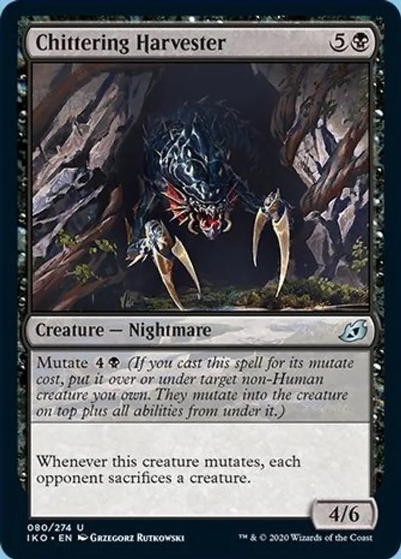Magic: the Gathering (mtg) uncommon Creature — Nightmare Chittering Harvester from Ikoria: Lair of Behemoths (iko) last updated 2026-02-21 16:23:32