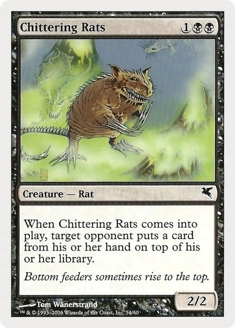 | Oracle Text | when chittering rats enters the battlefield, target opponent puts a card from their hand on top of their library. | ||