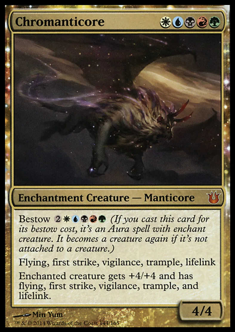 Magic: the Gathering (mtg) Mythic Rare Enchantment Creature - Manticore Chromanticore from Born of the Gods (BNG) last updated 2026-02-25 14:36:37